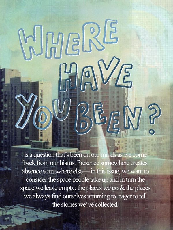 Our current theme for Issue 14: Where Have You Been?